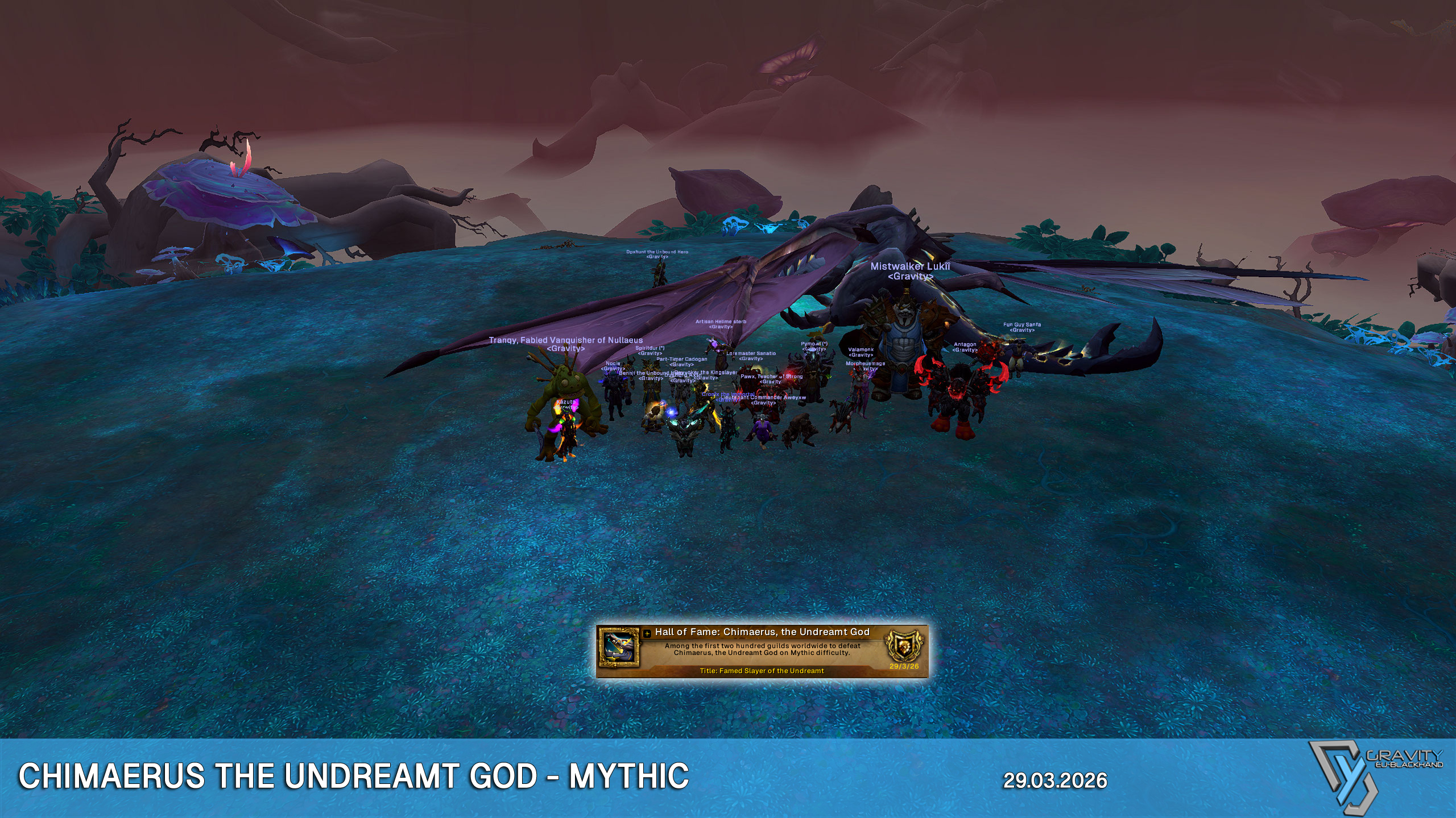◄ [Dreamrift] Chimaerus ( 1 / 1 Mythic ) ► 29.03.2026 ◄ [Voidspire] Fallen-King Salhadaar ( 3 / 6 Mythic ) ► 29.03.2026 ◄ [Voidspire] Vorasius ( 2 / 6 Mythic ) ► 26.03.2026 ◄ Dimensius, the All-Devouring ( 8 / 8 Mythic ) ► 15.10.2025